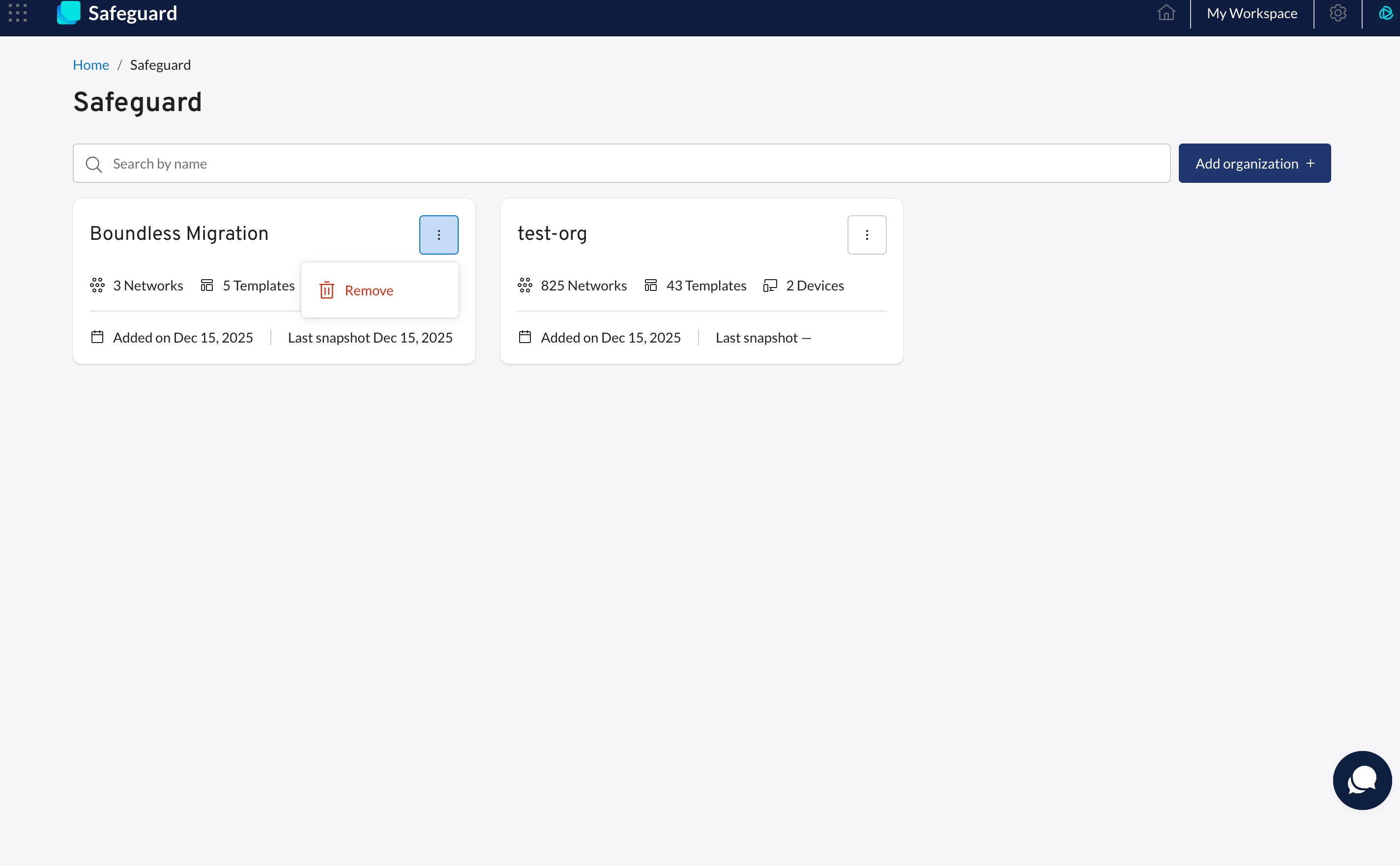 This guide walks you through the process of removing an organization from Safeguard and explains what happens during and after the grace period.